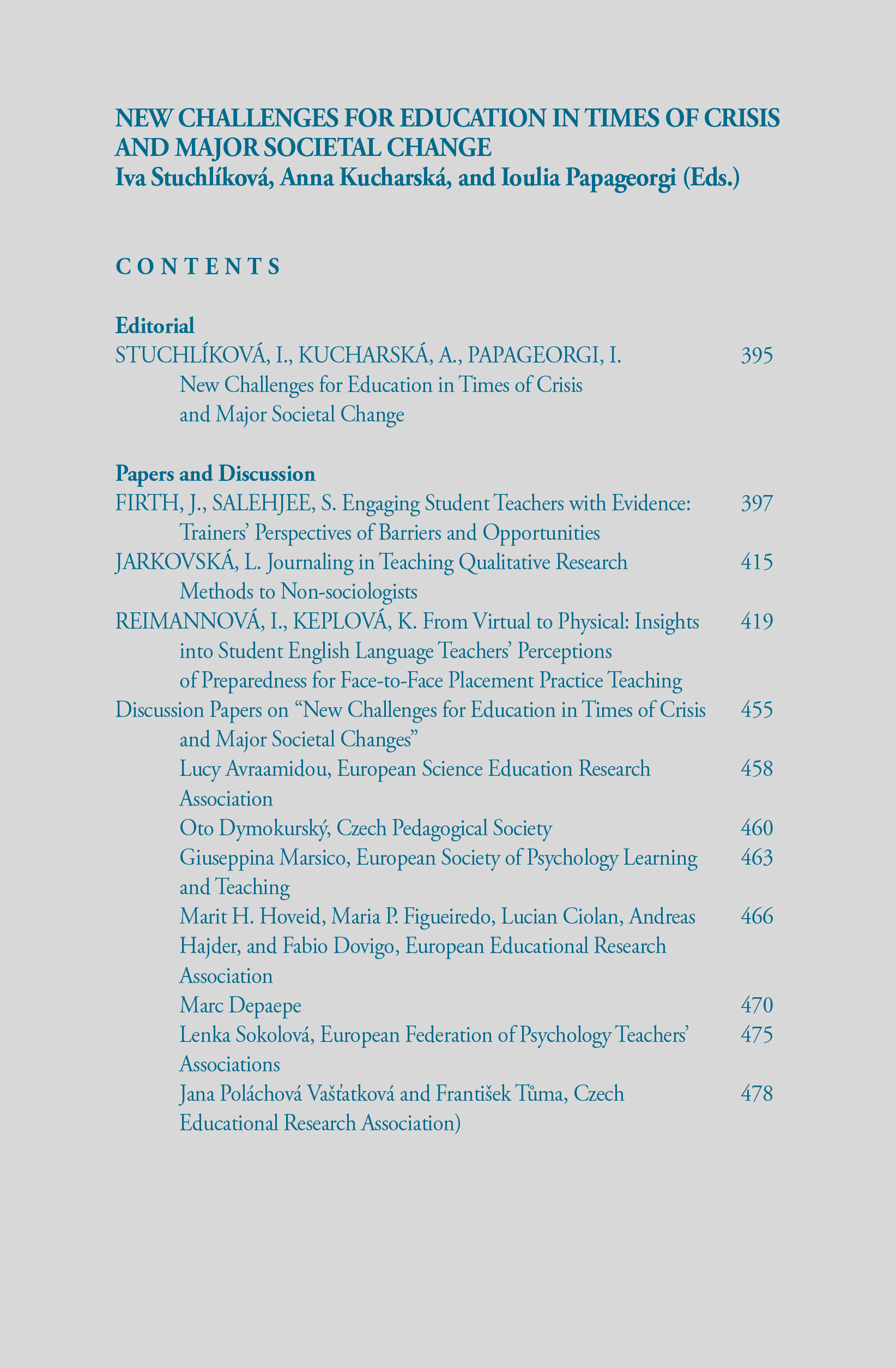 Časopis Pedagogika ISSN 0031-3815 (Print), ISSN 2336-2189 (Online)